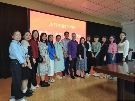 本网消息 外国语学院2009级英语3班部分校友重返校园,相聚青龙山下。10月4日下午,该班毕业纪念座谈会在X2-304会议室召开。外国语学院党总支部书记占赢、院长张健、班主任袁小溪、教师代表黄晓立及2009级英语3班部分校友参加座谈会。