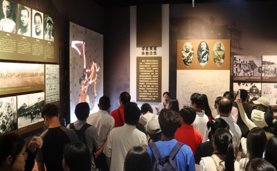 随后,师生们来到了北伐汀泗桥战役纪念馆。纪念馆由“军阀割据 北伐烽燃”、“浴血汀泗 铁军扬威”、“英勇铁军 北伐先锋”、“深切缅怀 光照千秋”4个部分组成。在讲解员讲解下,师生们聆听了叶挺独立团勇担北伐先锋,歼敌“汀泗桥”“贺胜桥”,攻克武昌城,享誉“铁军”的传奇故事。一幕幕感人的革命场景,一个个催人泪下的故事,让在场的师生沉浸在革命先辈、叶挺领导的独立团舍生忘死、英勇奋斗以及不怕流血牺牲的革命历史场景中。