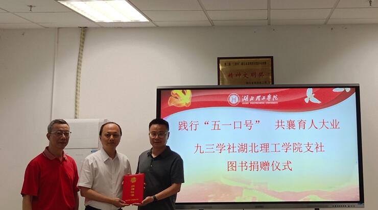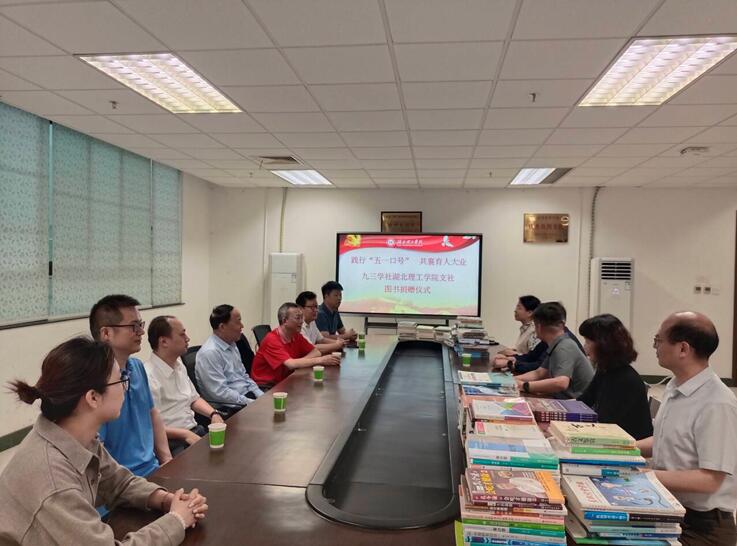 九三学社黄石市委员会副主委、学报编辑部主任徐先锋介绍了捐赠活动的筹划过程,学校参加捐赠社员老师捐赠情况,表达了九三学校支社将长期坚持图书捐赠、助力学校人才培养工作的意愿。